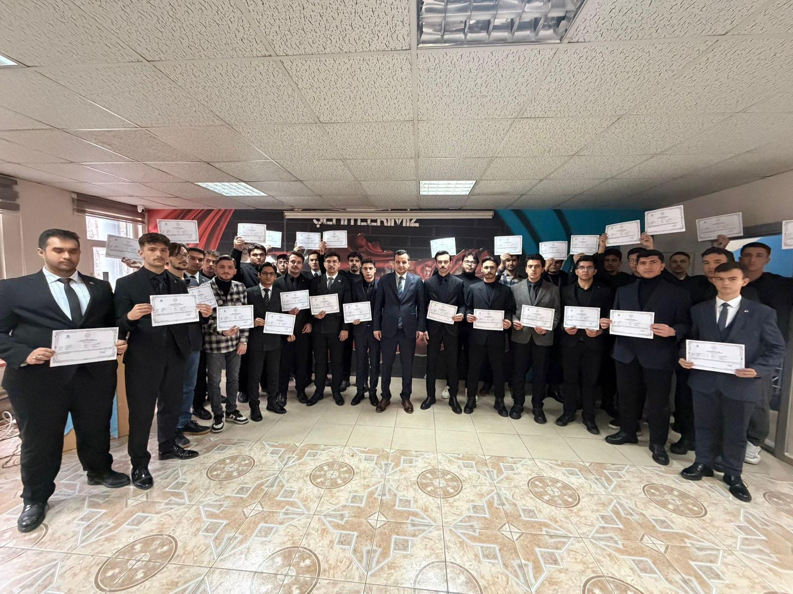 Ülkü Ocakları Konya İl Başkanlığı tarafından sertifikalı eğitim programları kapsamında gerçekleştirilen "Yangınla Mücadele" eğitimi katılımcılarına sertifikaları takdim edildi